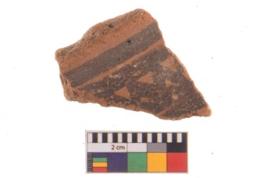 | Description / विवरण | Specimen of potsherd with decorative geometric painting, Type Black on Red ware . |