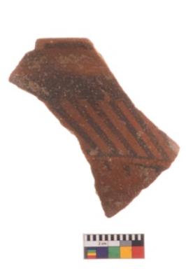 | Description / विवरण | Specimen of potsherd with decorative geometric painting, Type Black on Red ware . |