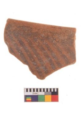 | Description / विवरण | Specimen of potsherd with decorative geometric painting, Type Black on Red ware . |