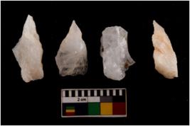 | Description / विवरण | There are n 4 flake cores. All of them are fully fluted flake cores without any trace of crested ridge flakes. Some are tapering at one end and some have sharp edges. |