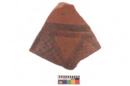 | Description / विवरण | Specimen of potsherd with decorative geometric painting, Type Black on Red ware . |