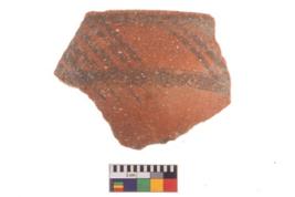 | Description / विवरण | Specimen of potsherd with decorative geometric painting, Type Black on Red ware . |