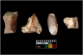 | Description / विवरण | There are n 4 of utilized worked cores. They show multidirectional irregular dominant scar pattern. Two are tapering on one end and three have flat base. |