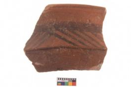 | Description / विवरण | Specimen of potsherd with decorative geometric painting, Type Black on Red ware . |
