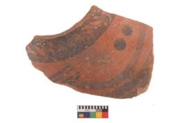 | Description / विवरण | Specimen of potsherd with decorative geometric painting, Type Black on Red ware . |