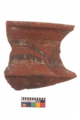 | Description / विवरण | Specimen of potsherd with traces of decorative geometric painting, Type Black on Red ware . |
