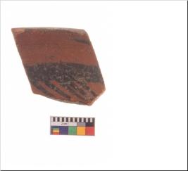 | Description / विवरण | Specimen of potsherd with decorative geometric painting, Type Black on Red ware . |