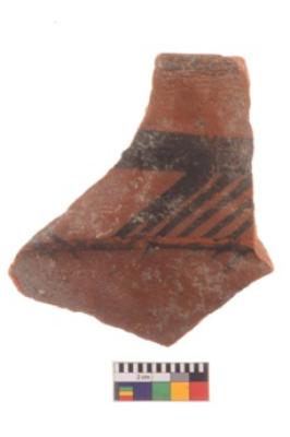 | Description / विवरण | Specimen of potsherd with decorative geometric painting, Type Black on Red ware . |
