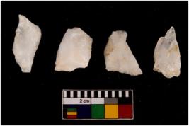 | Description / विवरण | There are n 4 flake cores. All of them are fully fluted flake cores without any trace of crested ridge flakes. Some are tapering at one end and some have sharp edges. |