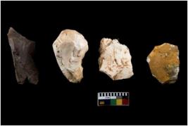 | Description / विवरण | There are n 4 of utilized worked cores. They show multidirectional irregular dominant scar pattern. One of them is tapering at one end. |