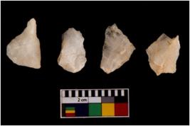 | Description / विवरण | There are n 4 flake cores. All of them are fully fluted flake cores without any trace of crested ridge flakes. Some are tapering at one end and some have sharp edges. |
