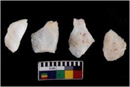 | Description / विवरण | There are n 4 flake cores. All of them are fully fluted flake cores without any trace of crested ridge flakes. Some are tapering at one end and few have round edges. |