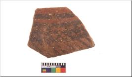 | Description / विवरण | Specimen of potsherd with decorative geometric painting, Type Black on Red ware . |
