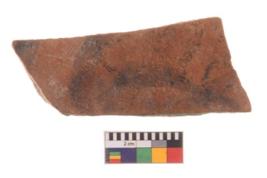 | Description / विवरण | Specimen of potsherd with traces of decorative geometric painting, Type Black on Red ware . |