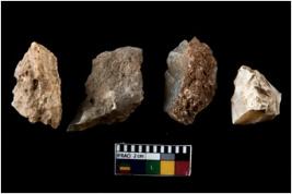 | Description / विवरण | There are n 4 of utilized worked cores. They show multidirectional irregular dominant scar pattern and two have broken tip. |