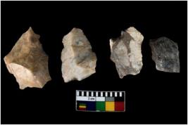 | Description / विवरण | There are n 4 of utilized worked cores. They show multidirectional irregular scar pattern and have sharp edges. Two are tapering on one end. |
