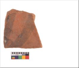 | Description / विवरण | Specimen of potsherd with decorative geometric painting, Type Black on Red ware . |