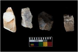 | Description / विवरण | There are n 4 of utilized worked cores. They show multidirectional irregular scar pattern. Two have broken tip. |