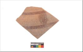 | Description / विवरण | Specimen of potsherd with decorative geometric painting, Type Black on Red ware . |