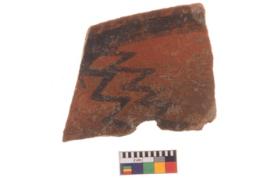 | Description / विवरण | Specimen of potsherd with decorative geometric painting, Type Black on Red ware . |