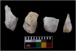 | Description / विवरण | There are n 4 flake cores. All of them are fully fluted flake cores without any trace of crested ridge flakes. Some are tapering at one end and few have round edges. |