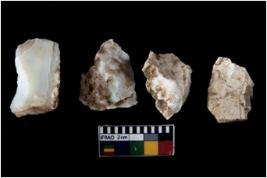 | Description / विवरण | There are n 4 of utilized worked cores. They show multidirectional irregular dominant scar pattern. Two are tapering on one end while three have flat base. |