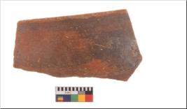 | Description / विवरण | Specimen of potsherd with decorative geometric painting, Type Black on Red ware . |