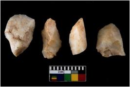 | Description / विवरण | There are n 4 of utilized worked cores. They show multidirectional irregular dominant scar pattern. Two are tapering on one end and are elongated in shape. |
