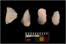 | Description / विवरण | There are n 4 flake cores. All of them are fully fluted flake cores without any trace of crested ridge flakes. Some are tapering at one end and some have sharp edges. |