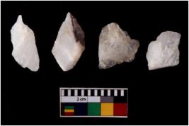 | Description / विवरण | There are n 4 flake cores. All of them are fully fluted flake cores without any trace of crested ridge flakes. Few are tapering at one end. Some have flat base and some have blunted edges. |