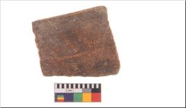 | Description / विवरण | Specimen of potsherd with decorative geometric painting, Type Black on Red ware . |