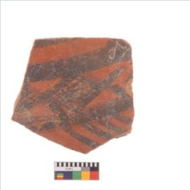 | Description / विवरण | Specimen of potsherd with decorative geometric painting, Type Black on Red ware . |