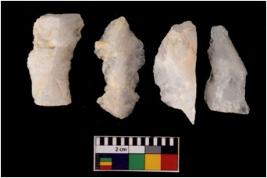 | Description / विवरण | There are n 4 flake cores. All of them are fully fluted flake cores without any trace of crested ridge flakes. Some are tapering at one end and some have sharp edges. |