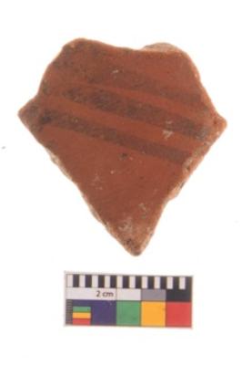 | Description / विवरण | Specimen of potsherd with traces of decorative geometric painting, Type Black on Red ware . |