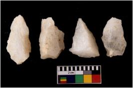 | Description / विवरण | There are n 4 flake cores. All of them are fully fluted flake cores without any trace of crested ridge flakes. Some are tapering at one end and some have sharp edges. |