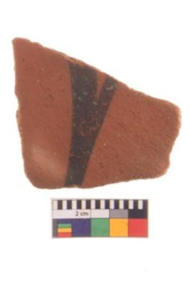 | Description / विवरण | Specimen of potsherd with decorative geometric painting, Type Black on Red ware . |