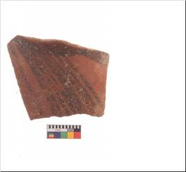 | Description / विवरण | Specimen of potsherd with decorative geometric painting, Type Black on Red ware . |