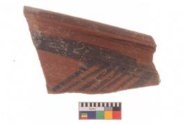 | Description / विवरण | Specimen of potsherd with decorative geometric painting, Type Black on Red ware . |