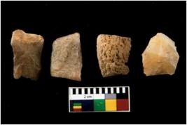 | Description / विवरण | There are n 4 of utilized worked cores. There are multidirectional irregular dominant scar pattern on both dorsal and ventral face. All are having sharp edges. |