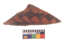 | Description / विवरण | Specimen of potsherd with decorative geometric painting, Type Black on Red ware . |