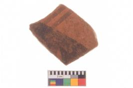 | Description / विवरण | Specimen of potsherd with decorative geometric painting, Type Black on Red ware . |