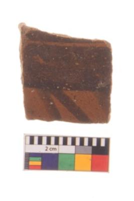 | Description / विवरण | Specimen of potsherd with decorative geometric painting, Type Black on Red ware . |