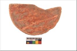| Description / विवरण | Specimen of a portion of a terracotta disc; it is irregular at the circumference and having rough surface. |