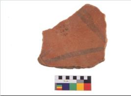 | Description / विवरण | Specimen of potsherd with decorative geometric painting, Type Black on Red ware . |