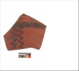 | Description / विवरण | Specimen of potsherd with decorative geometric painting, Type Black on Red ware . |