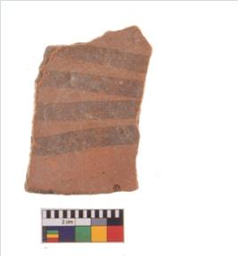 | Description / विवरण | Specimen of potsherd with decorative geometric painting, Type Black on Red ware . |