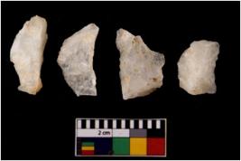 | Description / विवरण | There are n 4 flake cores. All of them are fully fluted flake cores without any trace of crested ridge flakes. Some are tapering at one end and some have sharp edges. |