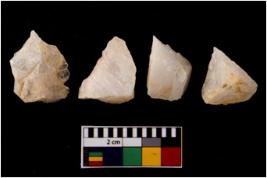 | Description / विवरण | There are n 4 flake cores. All of them are fully fluted flake cores without any trace of crested ridge flakes. Some have blunted edges and some have round edges. Few have flat base. |