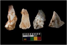 | Description / विवरण | There are n 4 flake cores. All of them are fully fluted without any trace of crested ridge flakes. Most of them are having sharp edges. |