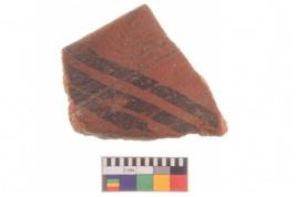 | Description / विवरण | Specimen of potsherd with decorative geometric painting, Type Black on Red ware . |